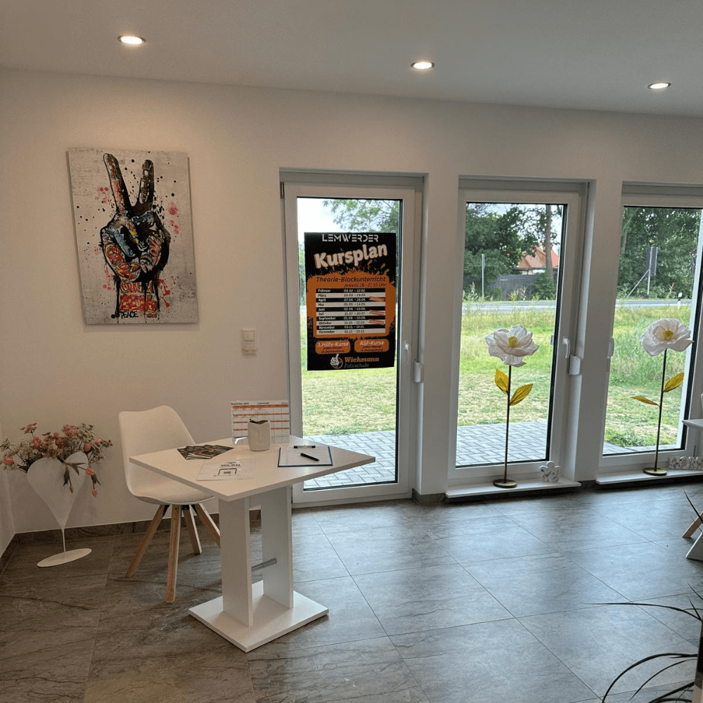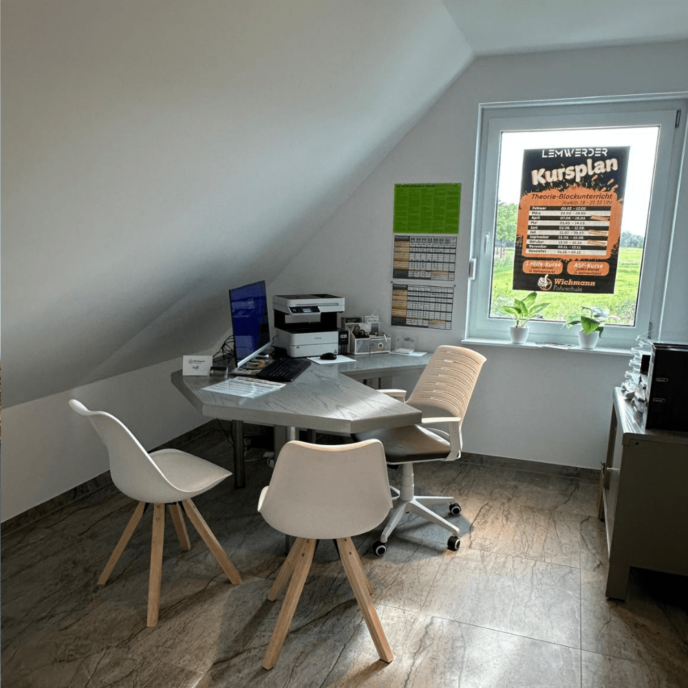 Unser Lernbereich in Lemwerder ist darauf ausgelegt, dir die bestmöglichen Voraussetzungen für deine Fahrausbildung zu bieten. Neben modernsten Lehrmitteln stehen dir in unseren Unterrichtsräumen auch innovative Technologien zur Verfügung, um das Lernen so effektiv und anschaulich wie möglich zu gestalten.